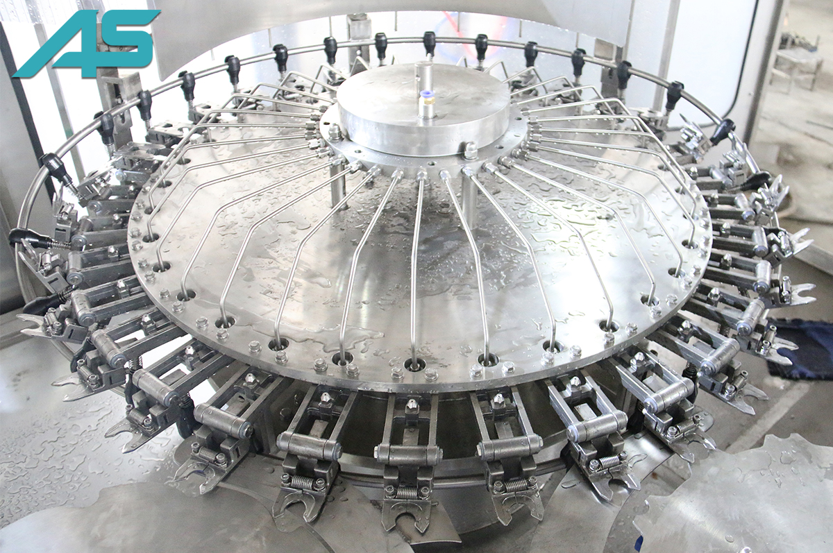 2、沖洗瓶口采用先進的卡瓶頸技術(shù),避免與螺紋口的接觸,衛(wèi)生,瓶子的輸送全部采用卡瓶頸技術(shù),變換瓶形無需調(diào)整高度,只需變換瓶身直徑相關(guān)的護板。